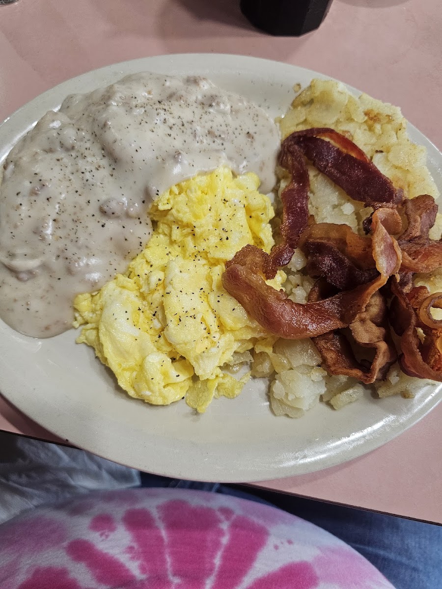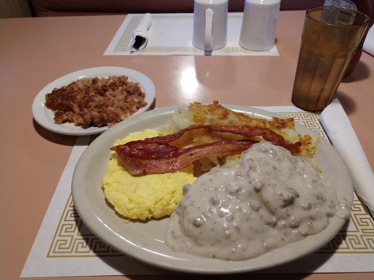 Corned Beef Hash Scrambled Eggs Potatoes with Biscuits and Gravy